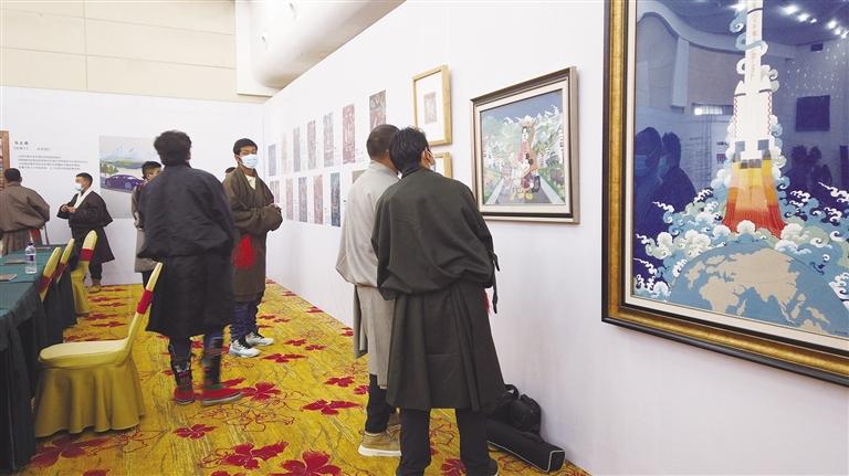 12月24日11時許,拉薩金谷飯店四樓氣氛熱烈,西藏唐卡藝術(shù)與文化協(xié)會召開的《新時代 新唐卡 新融合——鑄牢中華民族共同體意識》主題會議暨“一飛沖天——神十三”西藏新唐卡主題藝術(shù)展在這里拉開序幕。