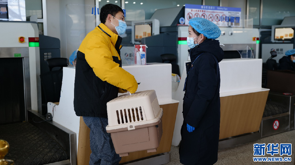 1月17日,拉薩貢嘎機場內(nèi)旅客正在向工作人員咨詢寵物托運事宜。新華網(wǎng) 貢桑央吉(實習生) 攝