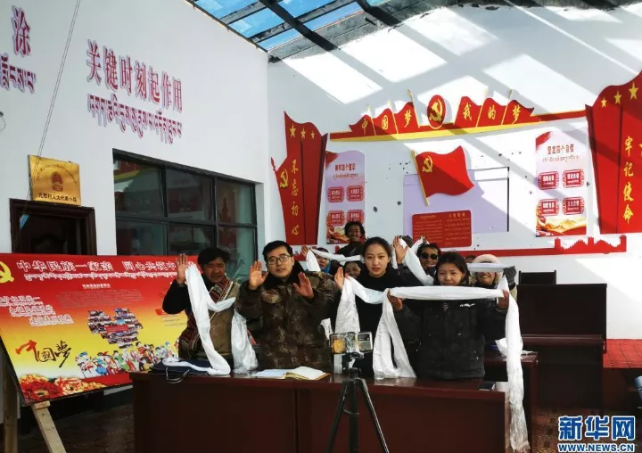 西藏那曲市申扎縣巴扎鄉(xiāng)幾那村群眾和學(xué)生在和浙江省諸暨市愛(ài)心人士、志愿者視頻連線。西藏自治區(qū)黨委網(wǎng)信辦駐申扎縣巴扎鄉(xiāng)幾那村工作隊(duì)供圖。
