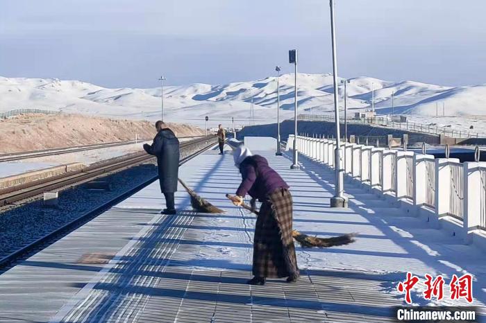 工作人員在海拔4500多米的那曲火車(chē)站清掃積雪。王志先 攝