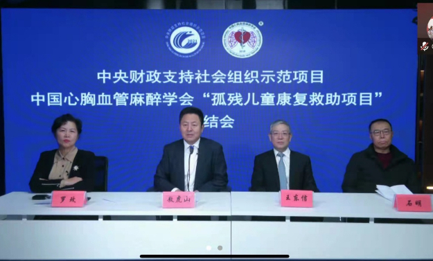 2022年1月26日,中國心胸血管麻醉學(xué)會孤殘兒童康復(fù)救助項目總結(jié)會通過線上線下相結(jié)合方式舉行。民政部兒童福利司兒童福利處處長李勇,中國醫(yī)學(xué)科學(xué)院阜外醫(yī)院麻醉科主任醫(yī)師、中國心胸血管麻醉學(xué)會秘書長敖虎山,國家兒童醫(yī)學(xué)中心主任、首都醫(yī)科大學(xué)附屬北京兒童醫(yī)院院長倪鑫,中國人民解放軍總醫(yī)院第七醫(yī)學(xué)中心附屬八一兒童醫(yī)院院長封志純等分別致辭,總結(jié)會由中國心胸血管麻醉學(xué)會孤殘兒童康復(fù)救助項目領(lǐng)隊羅玫主持。