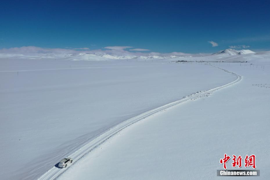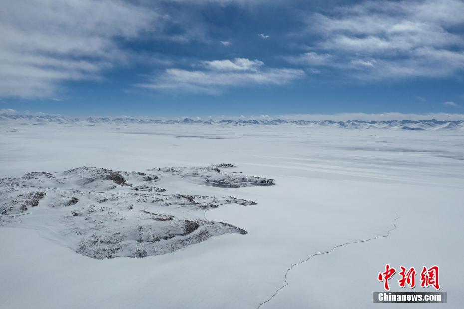 1月26日,納木錯雪景。雪后的西藏納木錯銀裝素裹,美景如畫。(無人機照片) 中新社記者 貢嘎來松 攝