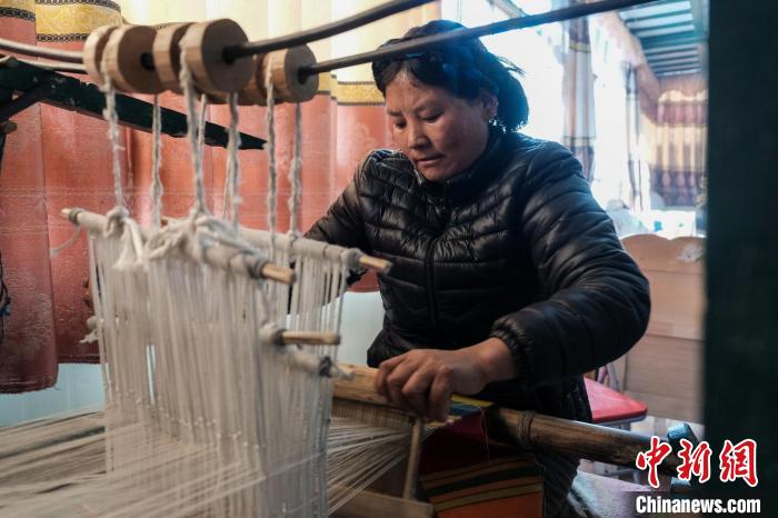 在他們家,記者看到了幾臺(tái)傳統(tǒng)藏式織機(jī),玉珍說,這是用于織邦典(藏式毛織圍裙)的工具。2016年開始,玉珍運(yùn)用編織技藝帶領(lǐng)村里的婦女共同成立了一個(gè)小規(guī)模的編織廠,“我們的羊毛線是自己染的,織出來的邦典質(zhì)感更好,也不愁銷路,為家里增收不少。”她說,編織讓大家實(shí)現(xiàn)了家門口就業(yè),也不耽誤家務(wù),村里人很樂于接受。