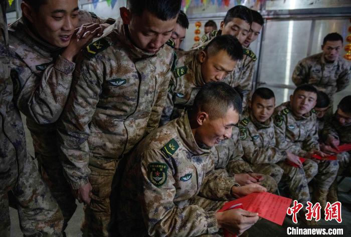 聯(lián)歡的尾聲指導(dǎo)員夏邦國(guó)拿著最后的彩袋走到臺(tái)前,把晚會(huì)推向高潮,“兄弟們,這還有一大袋紅包,里面裝著的可是最珍貴的祝?!?。官兵們用抽盲盒的形式拆開新年的“紅包”。中士趙路寬抽到一個(gè)最鼓的,打開是滿滿的糖果;下士吳兵拆開的是一個(gè)帶有小機(jī)關(guān)的新年賀卡;下士鄧云川拆到一封遠(yuǎn)方的匿名信,“雖不曾相見與相識(shí),但知道是你們?cè)谀瑘?jiān)守付出,守衛(wèi)著祖國(guó)的雪域邊防”。伴隨著他磕絆的普通話,連隊(duì)官兵漸漸安靜下來(lái)。“邊關(guān)有我,請(qǐng)祖國(guó)和人民放心”,簡(jiǎn)易投影的大屏上開始播放著官兵們一年多來(lái)頂風(fēng)冒雪,戰(zhàn)天斗地的光影片段,在這大山里的多少的苦累酸甜,都已經(jīng)鐫刻在茫茫雪域。