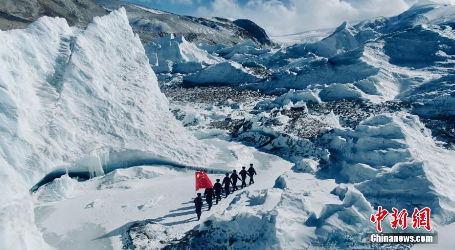 又是一年新春到,在舉國(guó)歡慶、闔家團(tuán)圓的時(shí)刻,駐守在平均海拔5373米的全國(guó)海拔最高行政鄉(xiāng)——普瑪江塘鄉(xiāng)的邊境派出所移民管理警察,在平均氣溫近零下30℃的邊境冰川一帶開(kāi)展例行巡邏,確保節(jié)日期間祖國(guó)邊境地區(qū)安全穩(wěn)定。圖為普瑪江塘邊境派出所移民管理警察在邊境冰川開(kāi)展巡邏。 徐道超 攝