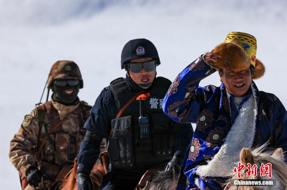 1月31日,西藏阿里高原氣溫驟降至零下30攝氏度,駐守在“生命禁區(qū)”的阿里軍分區(qū)某邊防團聯(lián)合駐地政府、公安一同,前往海拔5000多米的某山口執(zhí)行軍警民聯(lián)合巡邏任務(wù)。巡邏分隊不畏嚴寒缺氧,踏雪巡邏,守衛(wèi)著邊境的安寧。用特殊的方式,迎接新春的到來。劉曉東 攝
