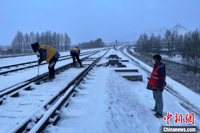 21日,西藏自治區(qū)日喀則市迎來大雪天氣,國鐵青藏集團有限公司拉薩基礎(chǔ)設(shè)施段日喀則信號車間立即啟動除雪應(yīng)急預(yù)案,工區(qū)工長蒲志遠組織職工清掃積雪,保障拉日鐵路正常運營。