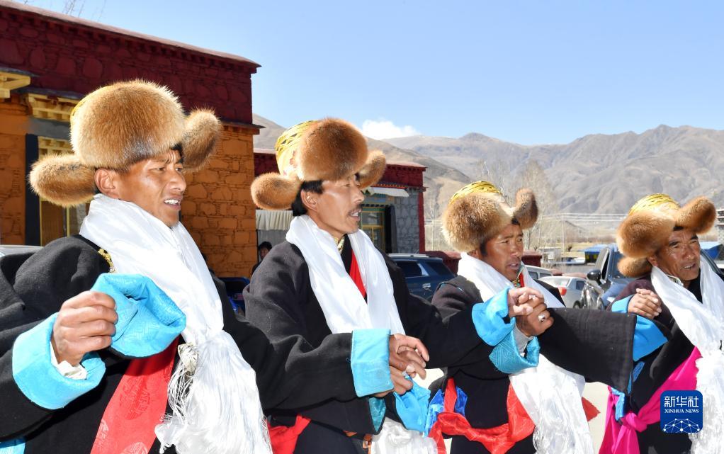 3月3日,西藏山南市貢嘎縣崗堆鎮(zhèn)群眾身著藏裝歡度藏歷水虎新年。新華社記者 覺(jué)果 攝