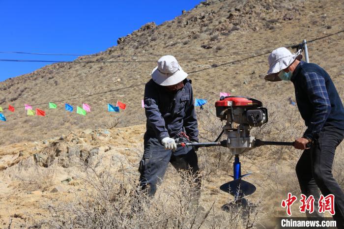 圖為拉薩南北山“金穗生態(tài)林”植樹造林綠化工程正在施工。農(nóng)行西藏分行 攝