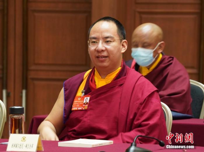 圖為3月9日,班禪額爾德尼·確吉杰布參加全國政協(xié)十三屆五次會(huì)議宗教界小組會(huì)議。中新社記者 李晗雪 攝