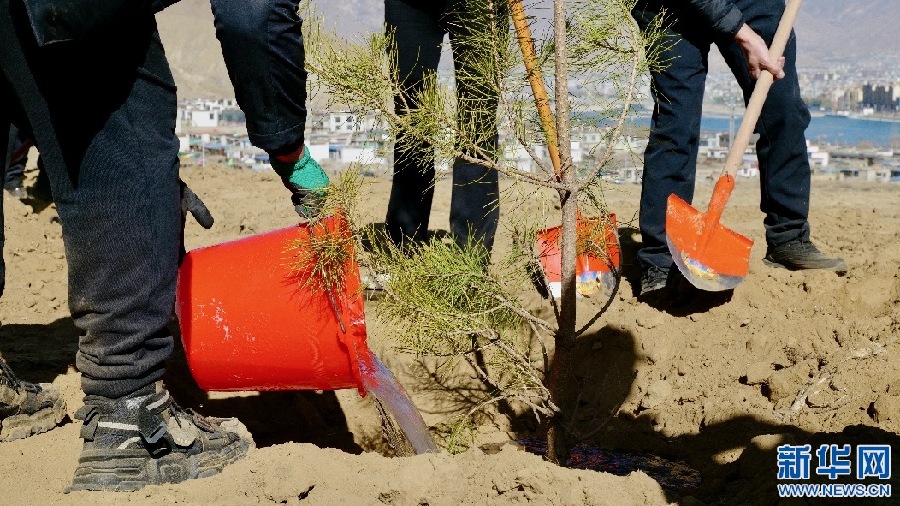 在現(xiàn)場,參加植樹的西藏銀行員工們,熱情飽滿、干勁十足,7人一組,搬苗、扶枝、封土、澆水、每道工序都做得仔細(xì)認(rèn)真。經(jīng)過一上午的奮戰(zhàn),300余棵油松“安家落戶”,為拉薩又增添了一片新綠。