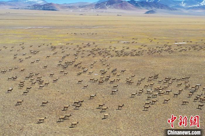 近日,西藏阿里地區(qū)改則縣先遣鄉(xiāng)附近出現(xiàn)大規(guī)模藏羚羊聚集現(xiàn)象,規(guī)模約有近萬頭。記者了解到,此種大規(guī)模藏羚羊聚集近年罕見,現(xiàn)場十分壯觀,像是草原上“長滿”了藏羚羊。