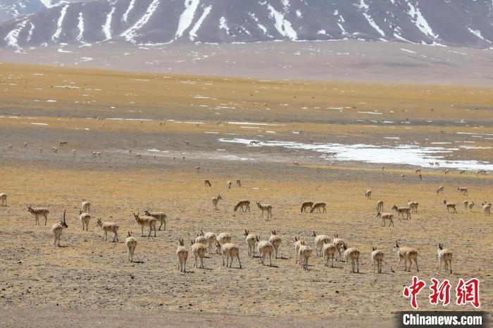 圖為3月27日,西藏改則縣先遣鄉(xiāng)附近的藏羚羊種群。邊巴 攝