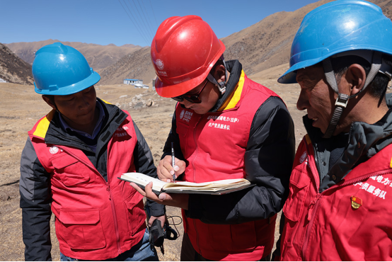 國網墨竹工卡縣供電公司員工在拉唐牧區(qū)對巡線進行詳細記錄(3月22日攝)。新華網發(fā)(閆昱翰攝)