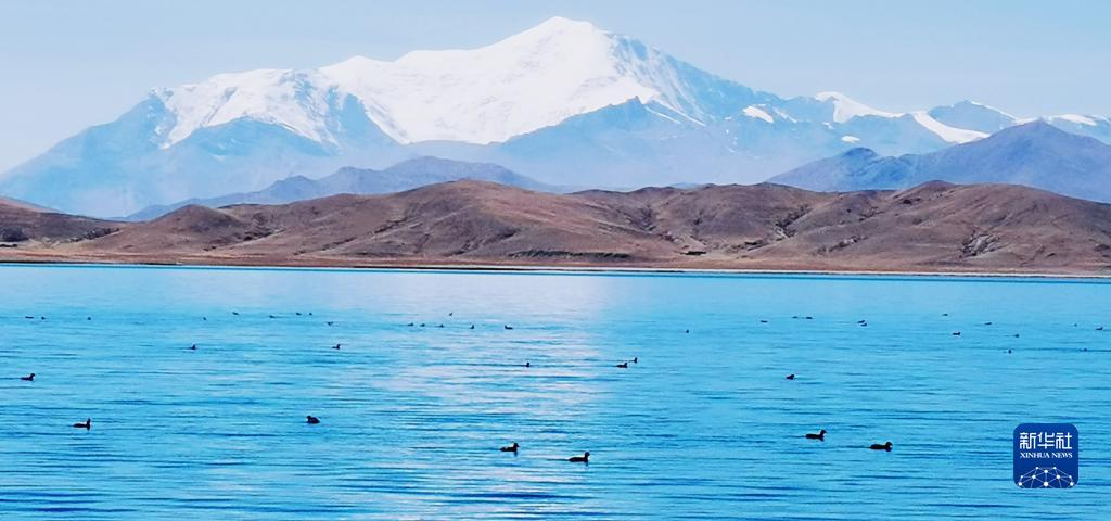 這是在特布拉村拍攝到的羊卓雍錯(cuò)湖上的鳥群。新華社記者 沈虹冰 攝(手機(jī)照片,3月19日攝)