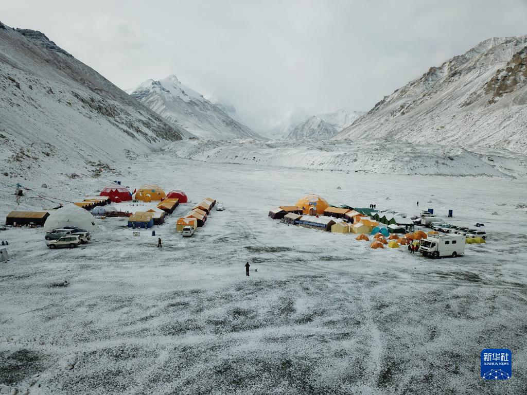 珠峰登山大本營(4月30日攝,無人機(jī)照片)。新華社記者 姜帆 攝