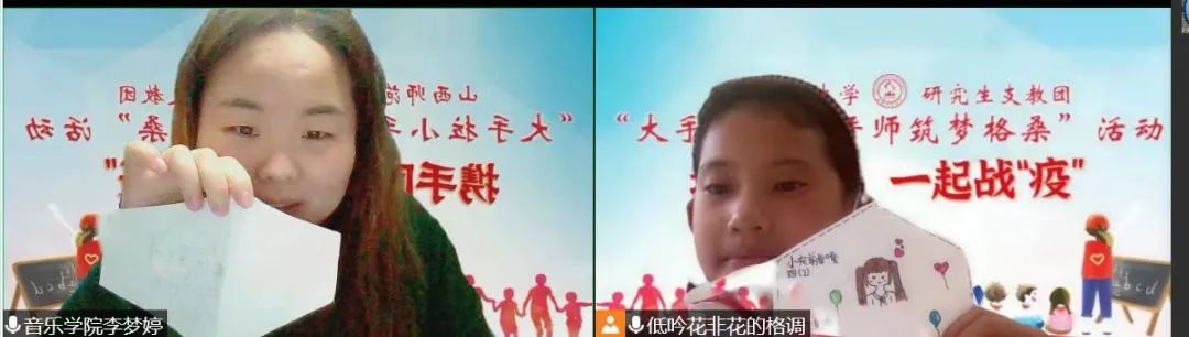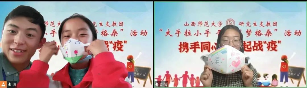 連線中,孩子們主動(dòng)關(guān)心我校志愿者的在校情況,孩子們充滿關(guān)切的眼神讓志愿者們紛紛動(dòng)容。志愿者們也向孩子們?cè)敿?xì)的介紹了防疫自護(hù)知識(shí),結(jié)合視頻、圖片等形式生動(dòng)講述了團(tuán)結(jié)一心、眾志成城的抗疫故事,向所有抗疫英雄們致敬,同時(shí)引導(dǎo)孩子們要深刻認(rèn)識(shí)到作為一名中國(guó)人的幸福,勉勵(lì)孩子們永遠(yuǎn)要團(tuán)結(jié)在一起,共克時(shí)艱,遠(yuǎn)在西藏也要做好防護(hù),一字一句中滿是擔(dān)心和牽掛。隨后,孩子們拿出早已準(zhǔn)備好的工具與志愿者們一同制作了口罩,口罩上寫(xiě)滿了對(duì)哥哥姐姐的關(guān)心、祝福,天真可愛(ài)的臉龐上寫(xiě)滿了戰(zhàn)勝疫情的決心。連線最后,孩子們將精心準(zhǔn)備的才藝表演給志愿者們,是鏗鏘有力的《少年中國(guó)說(shuō)》,是活潑動(dòng)人的《給你一個(gè)擁抱》,是真誠(chéng)溫暖的《聽(tīng)我說(shuō)謝謝你》,或許是那不太流暢的表達(dá)、不太連貫的動(dòng)作,讓遠(yuǎn)隔3700公里的傳遞更加有了溫度,讓兩顆互相牽掛的心靠的更近。