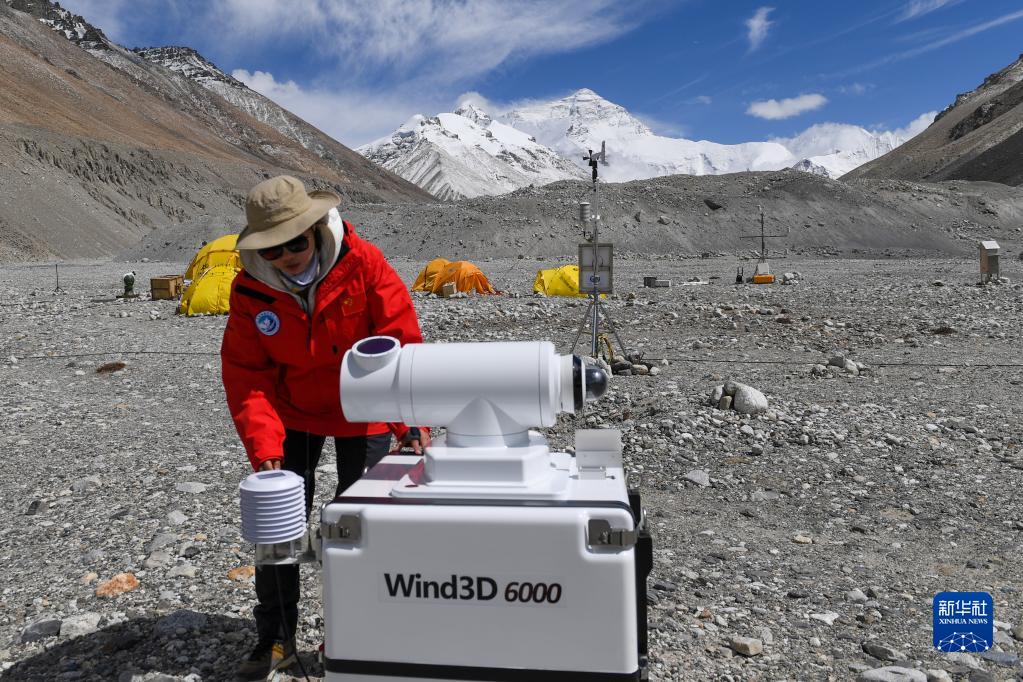 5月2日,在珠峰登山大本營,科研人員檢查測(cè)風(fēng)雷達(dá)。新華社記者 姜帆 攝