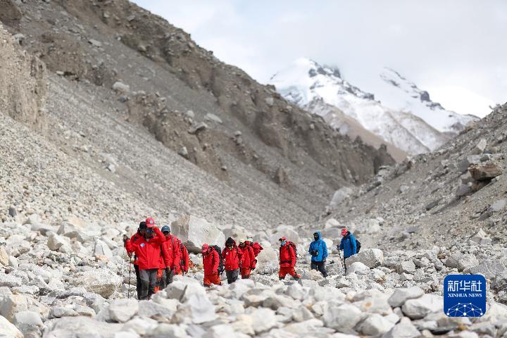 科考隊(duì)員正在返回大本營(yíng)(5月5日攝)。新華社記者 姜帆 攝