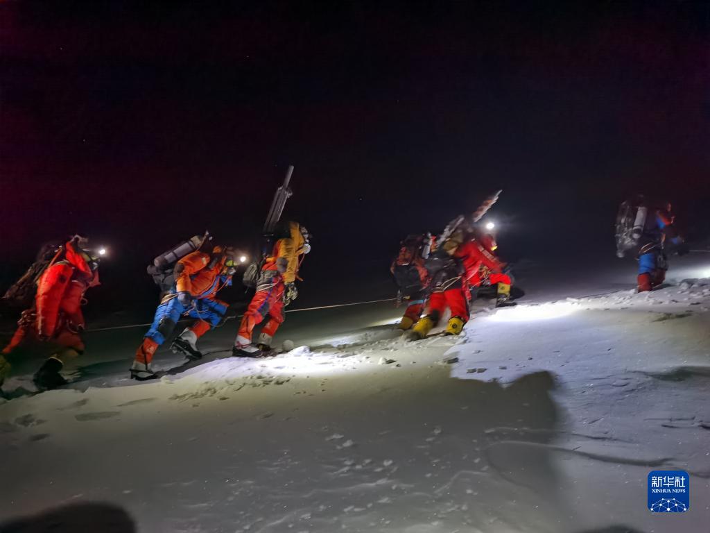 5月4日凌晨,珠峰科考隊員從突擊營地出發(fā),向珠穆朗瑪峰頂發(fā)起沖刺。新華社特約記者 索朗多吉 攝