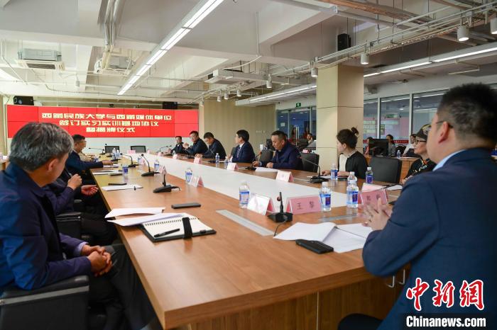 5月27日,西藏民族大學(xué)與西藏日報社、西藏廣播電視臺、人民網(wǎng)西藏頻道、中國新聞社西藏分社、中國西藏網(wǎng)西藏記者站等媒體單位簽訂實習(xí)實訓(xùn)基地協(xié)議暨揭牌儀式在西藏日報舉行。