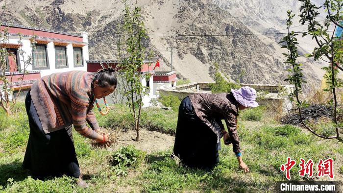 圖為大姐次仁吉拉和二姐央珍在果園內(nèi)勞作。貢桑拉姆 攝