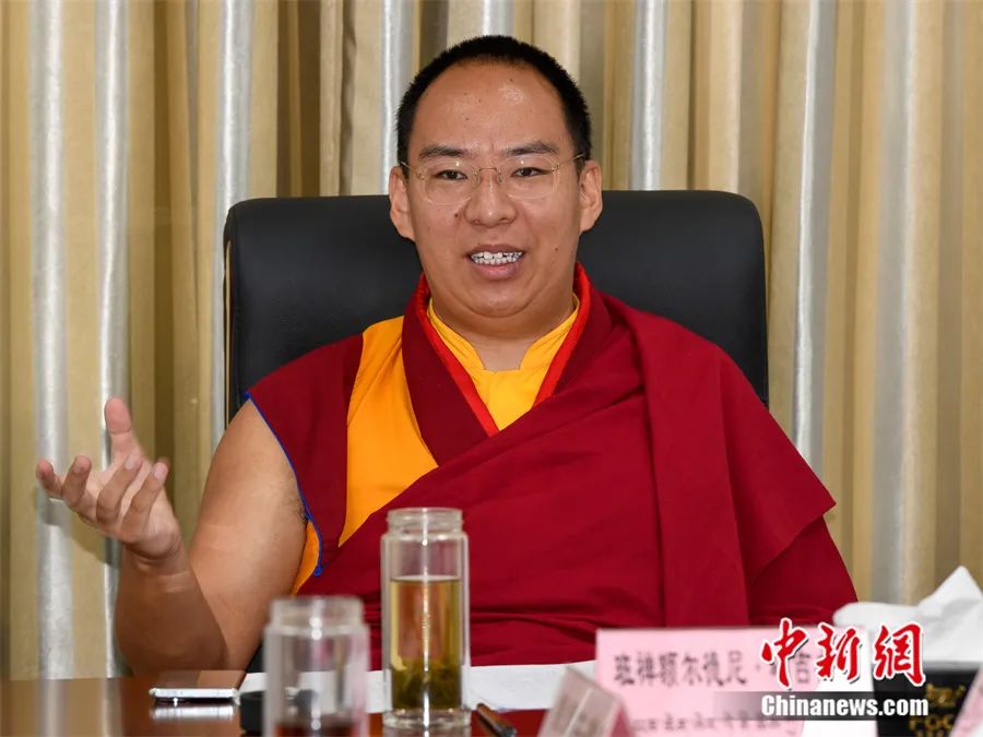 6月2日,班禪與藏傳佛教格魯派高僧座談中發(fā)言。中新社發(fā) 李林 攝
