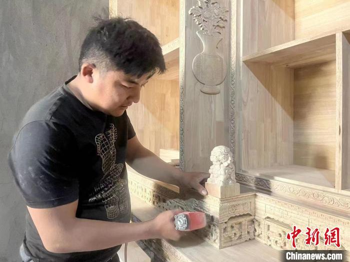 說(shuō)干就干,2021年他在村里開(kāi)了木材加工廠,為此,他還特地去外地學(xué)習(xí)操作方法,“藏式家具的雕花很復(fù)雜,但是我有壁畫(huà)的繪畫(huà)功底,學(xué)習(xí)起來(lái)非????!?/p>