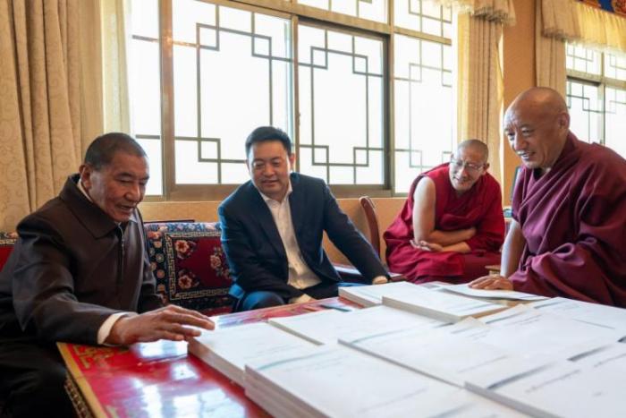 推進藏傳佛教中國化行穩(wěn)致遠。推進藏傳佛教中國化是習近平總書記對藏傳佛教工作提出的重大要求。全面貫徹新時代黨的宗教工作理論和方針政策,堅持“導(dǎo)”的思想方法,堅持“五個有利于”標準,尊重群眾的宗教信仰,依法加強宗教事務(wù)管理,不斷健全完善宗教工作體制機制和寺廟管理長效機制。大力實施社會主義核心價值觀引領(lǐng)工程、中華優(yōu)秀傳統(tǒng)文化學(xué)習浸潤工程、國家通用語言文字普及工程、教義教規(guī)闡釋工程,深入開展“國家意識、公民意識、法治意識”教育,常態(tài)化推進“遵行四條標準、爭做先進僧尼”教育實踐活動,支持宗教界進行自我變革、從嚴治教,促進藏傳佛教健康傳承,積極引導(dǎo)藏傳佛教與社會主義社會相適應(yīng)。