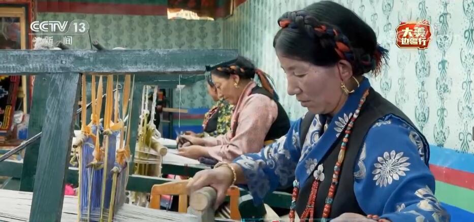 崗巴縣崗姆沖農(nóng)民專業(yè)合作社負(fù)責(zé)人 央拉姆:我們這里有卡墊、靠背、氆氌、邦典。這個(gè)叫邦典,我們就這樣戴的。