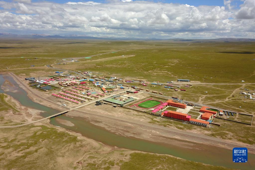 這是8月11日拍攝的治多縣索加鄉(xiāng)衛(wèi)生院所在的索加鄉(xiāng)街道全貌(無人機(jī)照片)。新華社記者 范培珅 攝