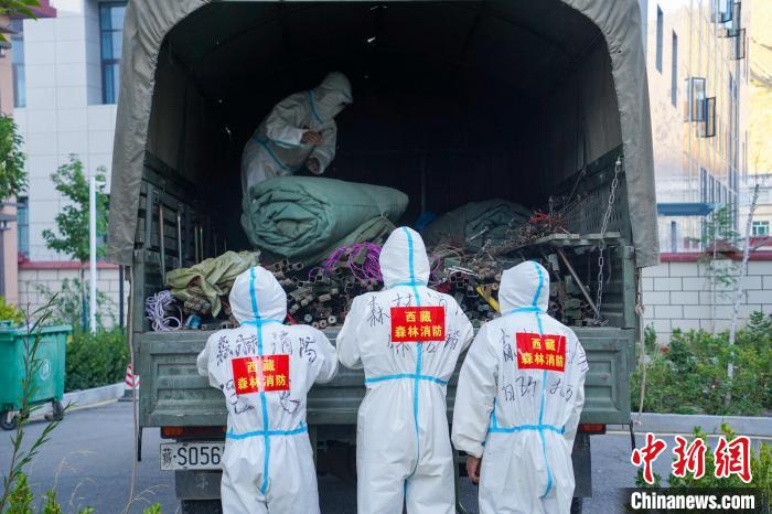 圖為那曲森林消防大隊組織搬運物資。西藏森林消防總隊 供圖