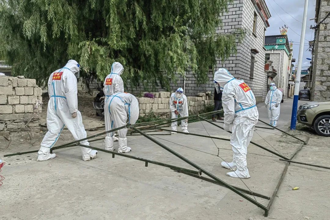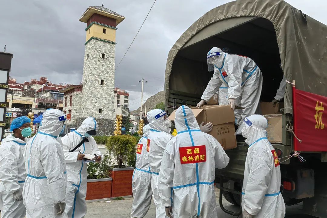 據(jù)那曲市森林消防大隊(duì)代理大隊(duì)長(zhǎng)孔特特介紹:疫情發(fā)生后,駐防分隊(duì)迅速成立“西藏森林消防新型冠狀病毒疫情防控黨員先鋒隊(duì)”,在山南市各社區(qū)、小區(qū)等重點(diǎn)區(qū)域?yàn)楣埠歪t(yī)護(hù)人員搭建生活帳篷;向山南市火車站、小區(qū)、居民樓、菜市場(chǎng)、村組等41個(gè)核酸檢測(cè)點(diǎn)完成防疫物資配送。
