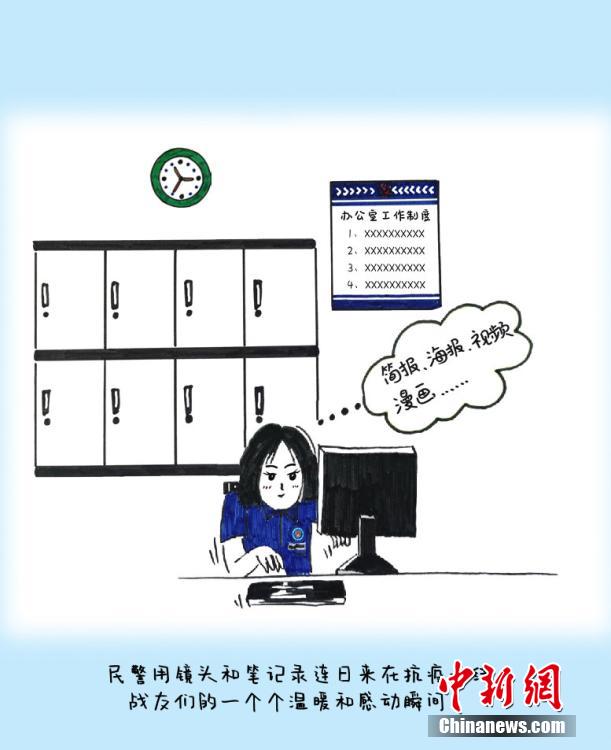 來(lái)自四川省宜賓學(xué)院的沈文靜是西藏日喀則邊境管理支隊(duì)昌龍邊境派出所教導(dǎo)員胡浩的妻子,7月26日來(lái)隊(duì)探親,此后遭遇西藏疫情暴發(fā)。在派出所抗疫期間,沈文靜拿起畫筆,將奮戰(zhàn)在抗疫一線的移民管理警察身影描繪記錄下來(lái),用漫畫的方式生動(dòng)再現(xiàn)西藏移民管理警察的戰(zhàn)“疫”人物群像。沈文靜 繪 龍小鳳 文