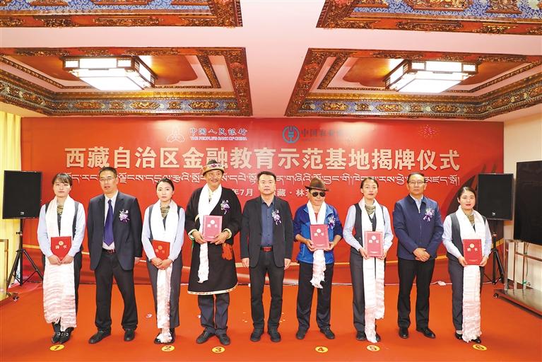 圖為林芝市首個自治區(qū)級金融教育示范基地在農(nóng)行林芝分行揭牌。