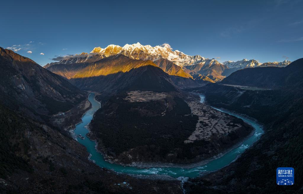 流淌在南迦巴瓦峰腳下的雅魯藏布江(11月28日攝,無(wú)人機(jī)合成照片)。新華社發(fā)(董志雄 攝)