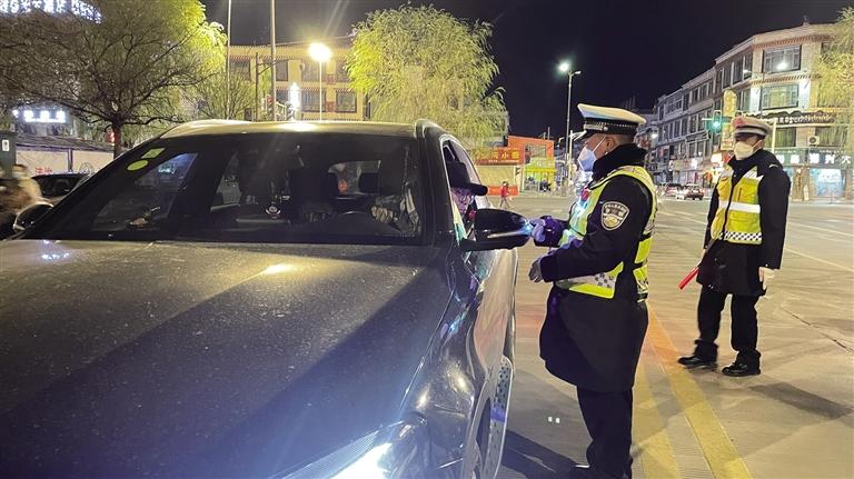 拉薩冬日的夜晚寒風凜冽。夜色中,一輛輛汽車有序通行,街道又恢復了往日的熱鬧。當天晚上9時許,記者跟隨拉薩市公安局交警支隊執(zhí)法監(jiān)督大隊民警前往江蘇大道,城南大隊的民警已經(jīng)設置好路障、標牌,正在對過往車輛逐一進行詳細排查。“您好,請出示駕照。”“您好,請吹氣?!痹诿窬闹笓]下,車輛有序通過檢查點。市民扎西多吉駕車經(jīng)過檢查點后告訴記者,在這么冷的天氣里,交警依然堅守在路面上,確實令人敬佩,應該為他們點贊?!拔視斡洝_車不喝酒,喝酒不開車’,也會自覺遵守交通法律法規(guī),文明出行?!痹鞫嗉f。