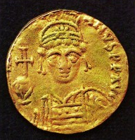 烏蘭大南灣墓地出土的拜占庭金幣。青海省文物考古研究所供圖