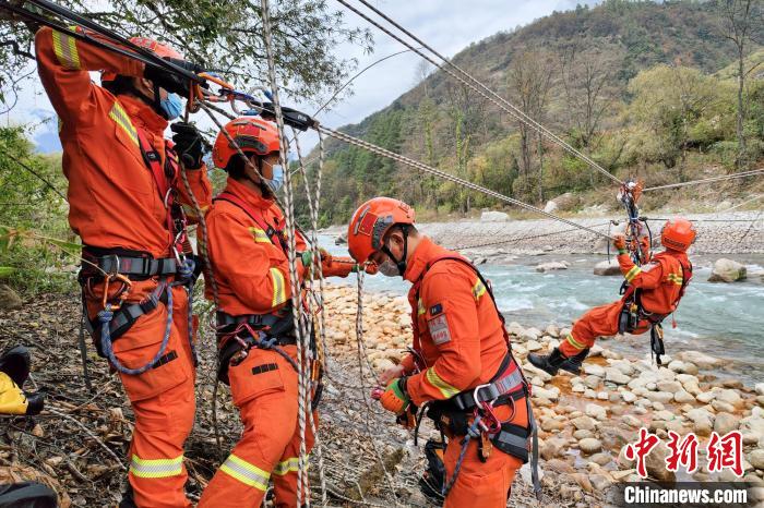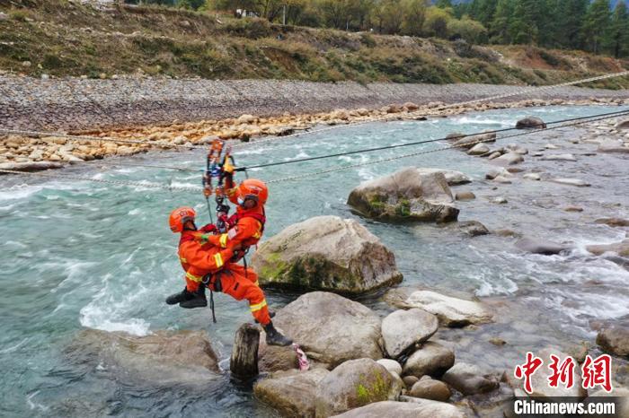 繩索渡河救援訓練現(xiàn)場?!√剖啦?攝