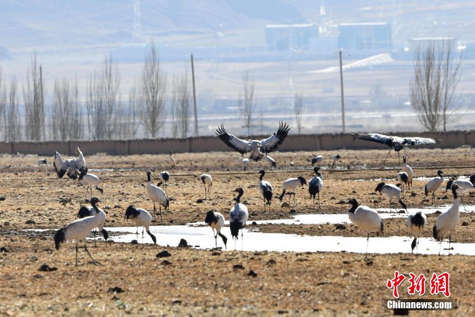 每年的10月底,成群的黑頸鶴飛到西藏拉薩市林周縣越冬,在拉薩市林周縣周邊的湖泊濕地度過(guò)5個(gè)月的“閑云野鶴”生活,次年三四月份再飛向藏北草原繁殖。黑頸鶴是世界上唯一一種高原鶴類(lèi)。具有足長(zhǎng)、喙長(zhǎng)、頸長(zhǎng)的典型涉禽類(lèi)特征,適合在沼澤地里行走。黑頸鶴的頸、尾為黑色,體羽為灰白色。黑頸鶴是國(guó)家一級(jí)保護(hù)動(dòng)物。目前,每年到林周縣越冬的黑頸鶴已達(dá)2000只左右。圖為黑頸鶴在林周境內(nèi)的農(nóng)田里覓食。 貢嘎來(lái)松 攝