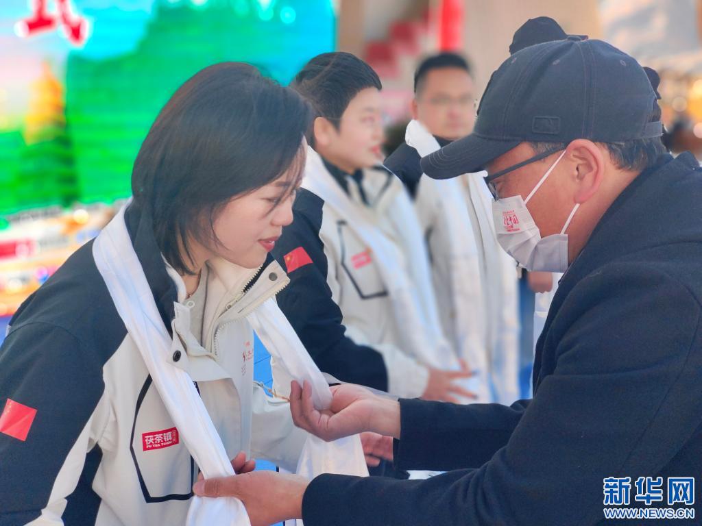 抵達終點后,車隊成員接受哈達(12月23日攝)。記者劉洲鵬 攝
