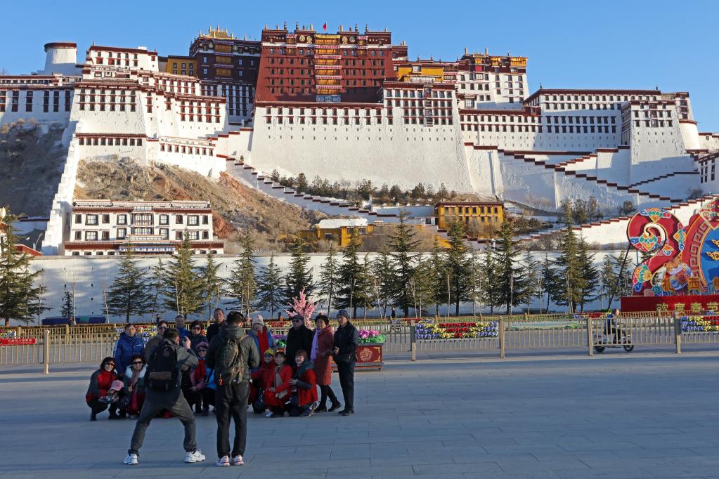 2022年3月7日,游客在布達(dá)拉宮廣場合影留念。新華社記者 姜帆 攝
