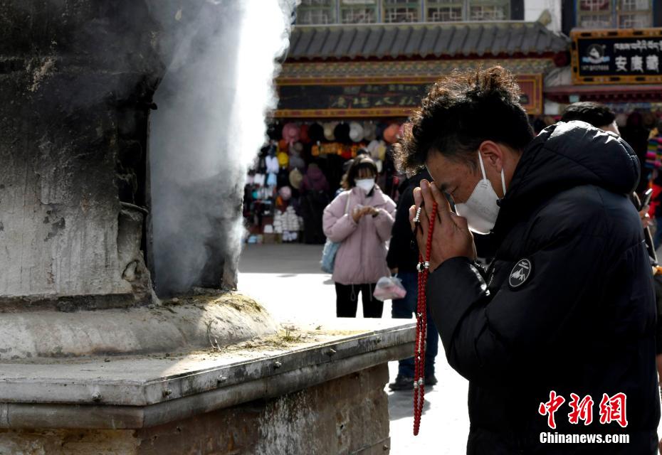 1月12日,西藏拉薩,信眾在大昭寺前朝拜。 李林 攝