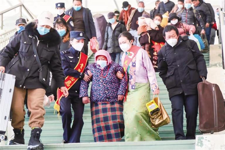為做好春運(yùn)工作,拉薩火車站團(tuán)委“天路格?;ㄇ嗄曛驹刚叻?wù)隊(duì)”正式啟動“熱心服務(wù)春運(yùn)路 愛心志愿暖冬行”行動。 1月7日起至2月中旬,旅客可以在拉薩火車站進(jìn)出站口、候車大廳等場所看到一抹青春“志愿藍(lán)”。山南火車站、林芝火車站也可以看到穿戴“天路格?;ㄖ驹刚摺本R帶的鐵路工作者。本次暖冬行動為期40天,每天共計(jì)有20余名志愿者參與活動,來自“天路格?;ㄇ嗄曛驹刚叻?wù)隊(duì)”的鐵路青年志愿者將和地方志愿者一起為進(jìn)藏、出藏旅客提供引導(dǎo)咨詢、愛心幫扶等服務(wù),用最溫暖、最燦爛的笑容、最便捷暖心的服務(wù)舉措保障每位旅客便捷出行。