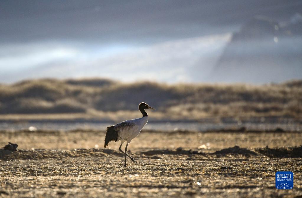 在西藏雅魯藏布江中游河谷黑頸鶴國家級(jí)自然保護(hù)區(qū)日喀則市拉孜縣越冬的黑頸鶴(1月19日攝)。新華社記者 晉美多吉 攝