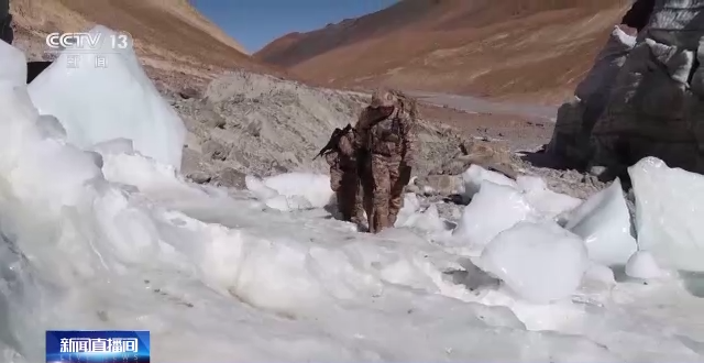 經(jīng)過(guò)一個(gè)多小時(shí)的車(chē)行顛簸,巡邏分隊(duì)到達(dá)了車(chē)行道路的終點(diǎn),接下來(lái)的徒步巡邏才是此次巡邏挑戰(zhàn)的開(kāi)始。翻越海拔6000米的冰川,這對(duì)于常年駐守的官兵們來(lái)說(shuō)也是極大的挑戰(zhàn),行進(jìn)途中稍不注意就會(huì)摔倒在地,即便是經(jīng)驗(yàn)豐富的老兵走在上面也時(shí)常手腳并用才能前行。