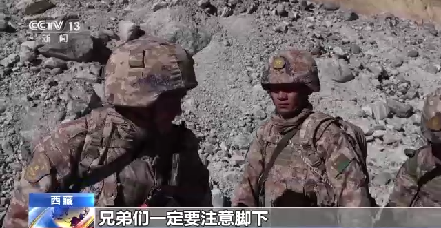 西藏軍區(qū)“高原戍邊模范營(yíng)”某連連長(zhǎng) 潘洪帥:兄弟們一定要注意腳下,每一步都要踩實(shí),現(xiàn)在我們手拉手往上走。
