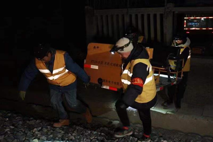 “大家?guī)Ш霉ぞ卟牧希瑴?zhǔn)備出發(fā)。”22時(shí)整,隨著作業(yè)負(fù)責(zé)人探傷工區(qū)工長羅布一聲令下,呼嘯的寒風(fēng)中,黃色的“迷你敞篷車”緩緩啟動(dòng),載著4名職工,開始了當(dāng)晚對拉林鐵路20多公里線路的探傷檢查任務(wù)。