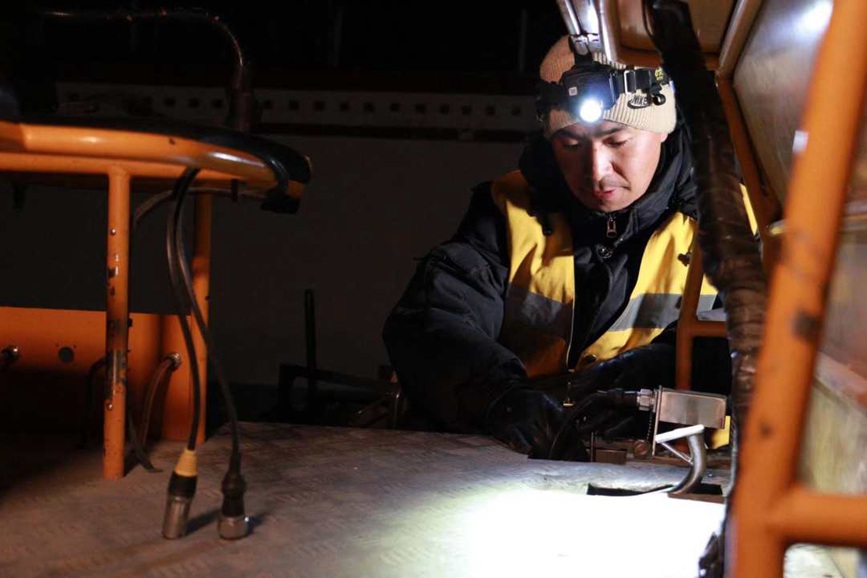經(jīng)過3個(gè)小時(shí)的連續(xù)檢查,零時(shí)50分,20公里的探傷作業(yè)全部完成。職工們準(zhǔn)時(shí)到達(dá)下道地點(diǎn),開始進(jìn)行探傷數(shù)據(jù)的下載、上傳,緊接著,他們又各司其職,開始對探傷儀進(jìn)行拆解,幾分鐘前還在線路上“嗡嗡嗡”不停探傷檢查的“迷你敞篷車”,很快成為一堆形態(tài)各異的零部件,職工格桑群培開始仔細(xì)清點(diǎn)拆卸下來的部件和工具材料,確認(rèn)無遺留后,他鎖上通道門,大家準(zhǔn)備乘車返回工區(qū)。