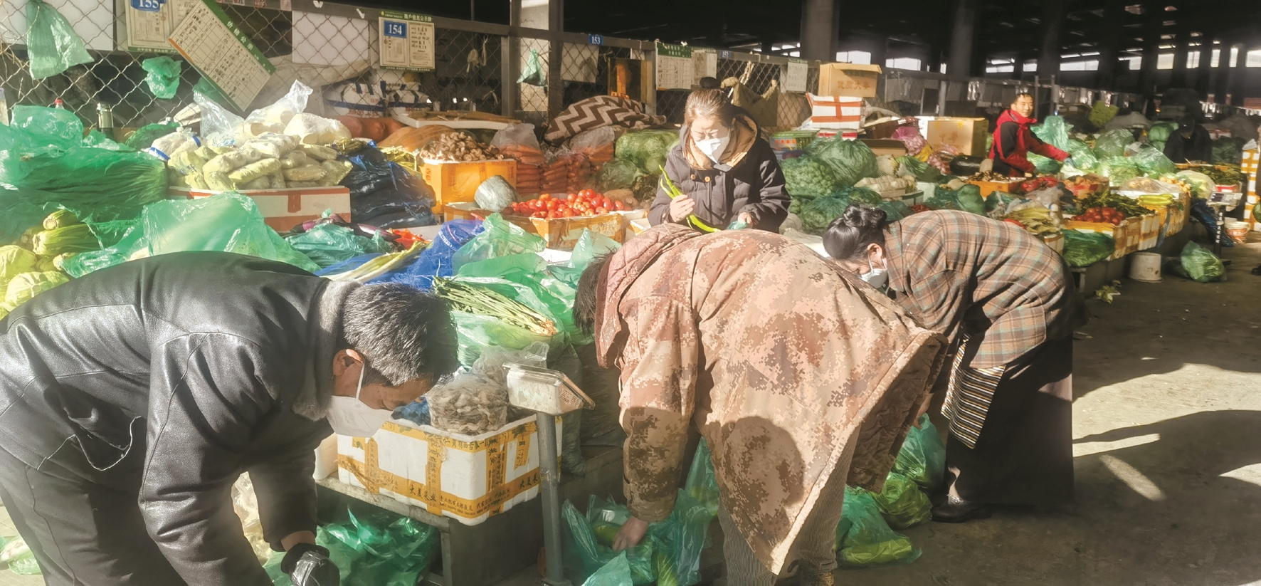 圖為在拉薩東嘎農(nóng)副產(chǎn)品批發(fā)市場蔬菜銷售區(qū),市民在購買蔬菜。拉薩融媒記者 楊 璐攝